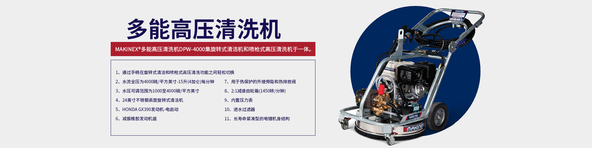 Makinex多能高壓清洗機(jī)DPW-4000具有無可比擬的多用性。雙清洗機(jī)功能和可調(diào)節(jié)的水壓使其完美適用于重型外部清潔應(yīng)用…